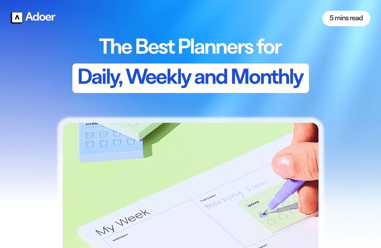 Here are the best digital weekly planners for 2025, starting with Adoer, which combines innovation and simplicity to help you get the most out of your week.