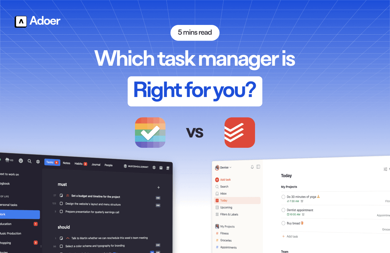 If you’re ready to level up your productivity and experience a task manager who truly has it all, Adoer is the smart choice. Try Adoer today and see how it stacks up in the Lunatask vs Todoist comparison—experience seamless productivity with a tool built for you!