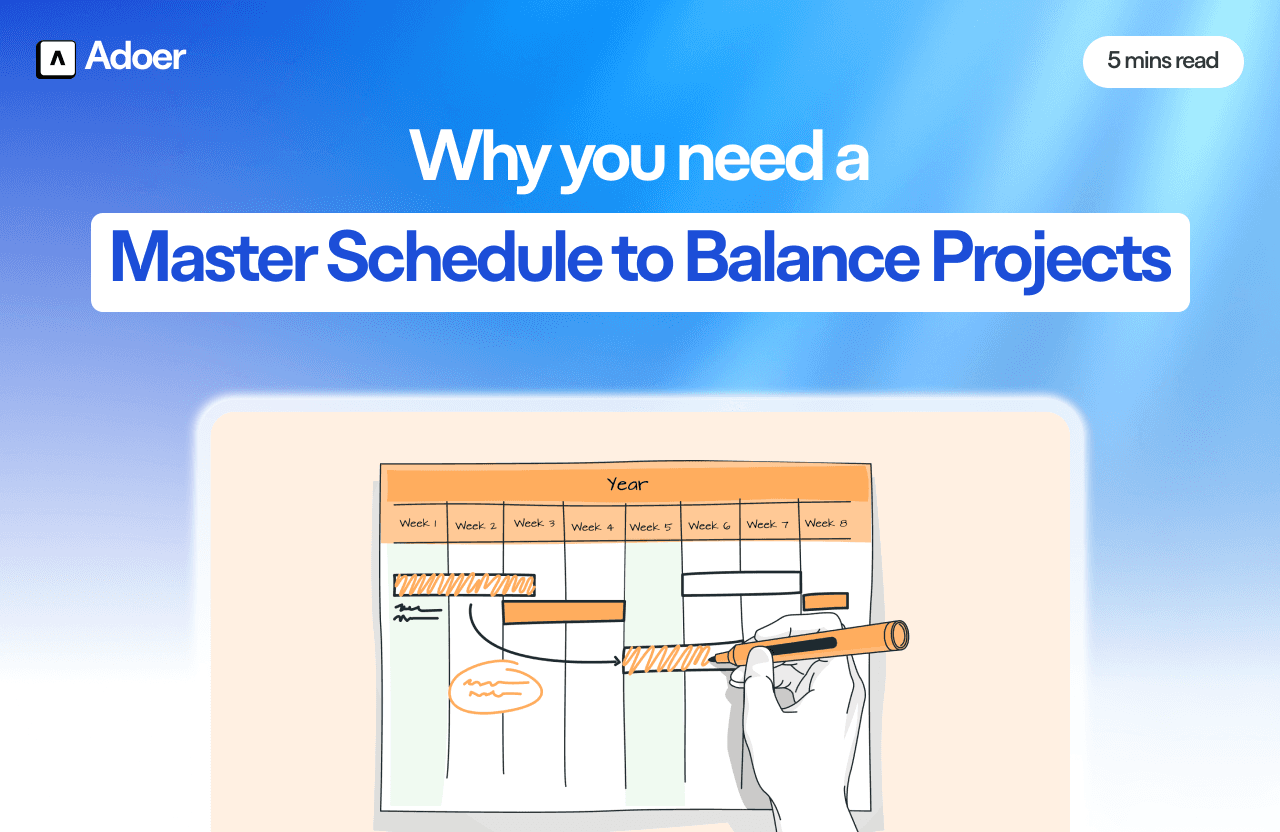 Automatically adjust for unforeseen changes (unless AI-driven, like Adoer’s platform): While a master schedule can help with planning, it won’t automatically adapt to new developments unless you’re using an AI-powered tool like Adoer’s platform. This means that manual updates will be necessary when things change unexpectedly.